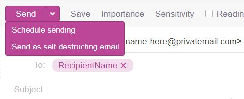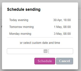 Once the message is ready for sending and at least one recipient is specified, select "Shedule sending" option from dropdown menu on "Send" button.